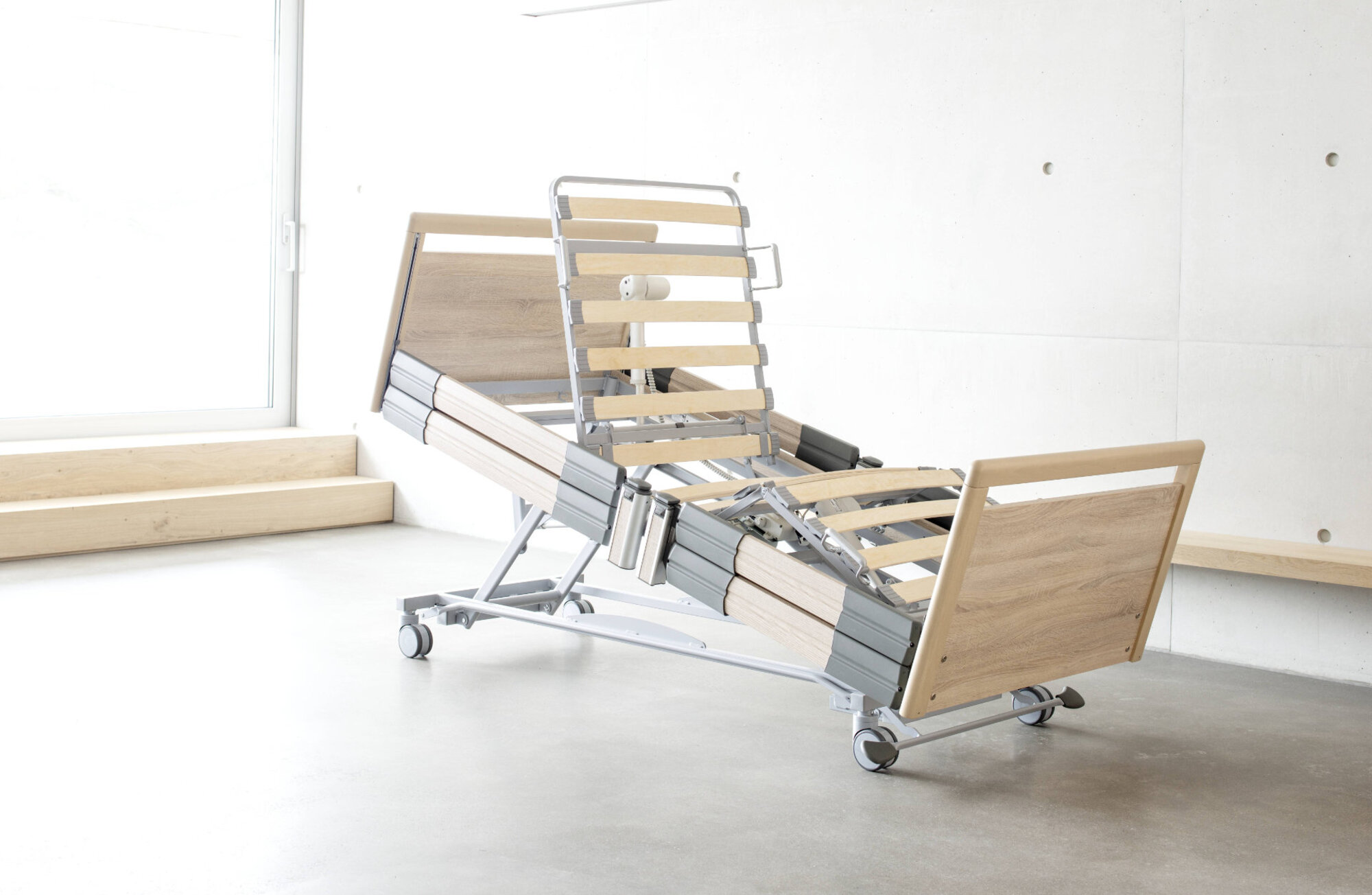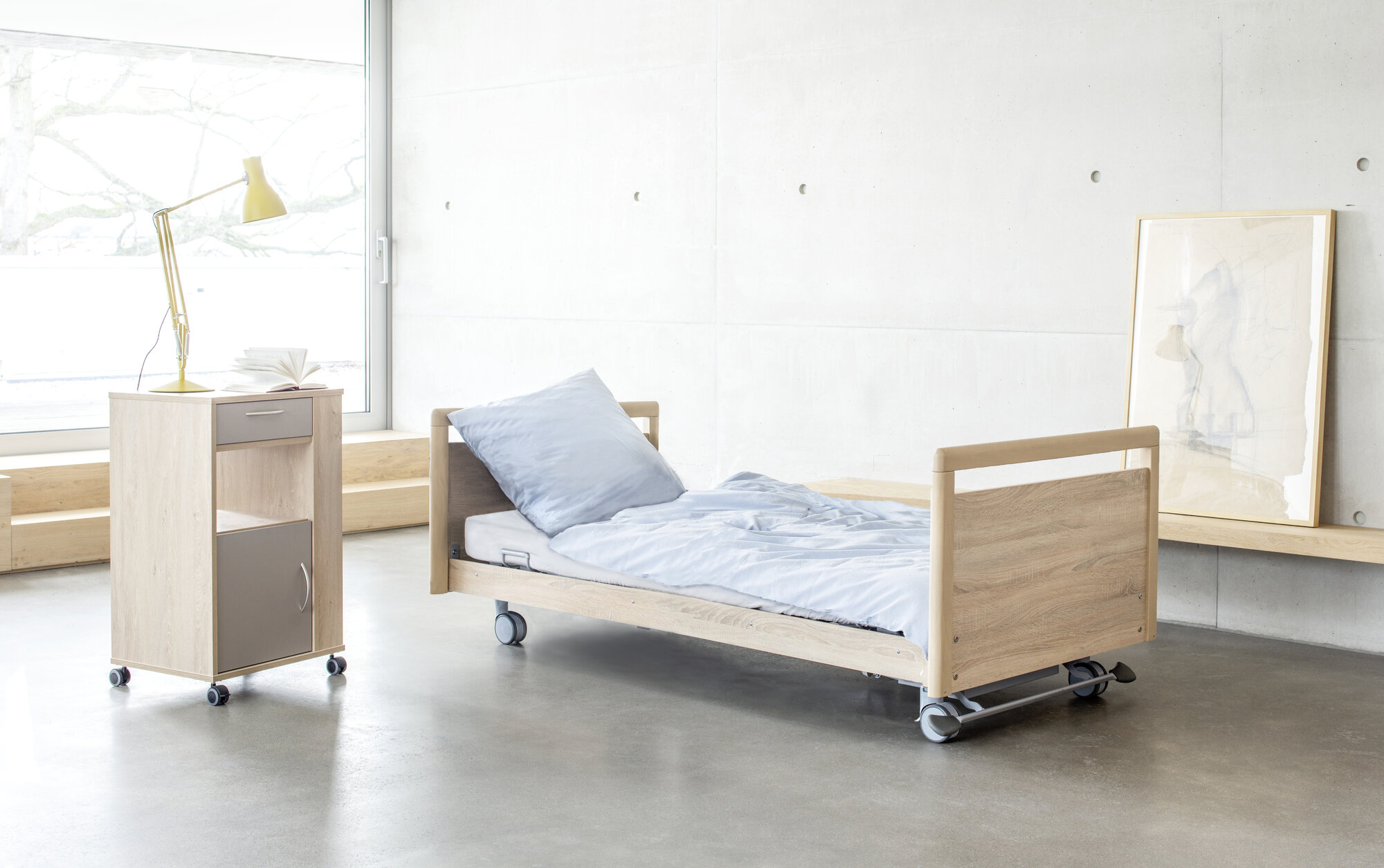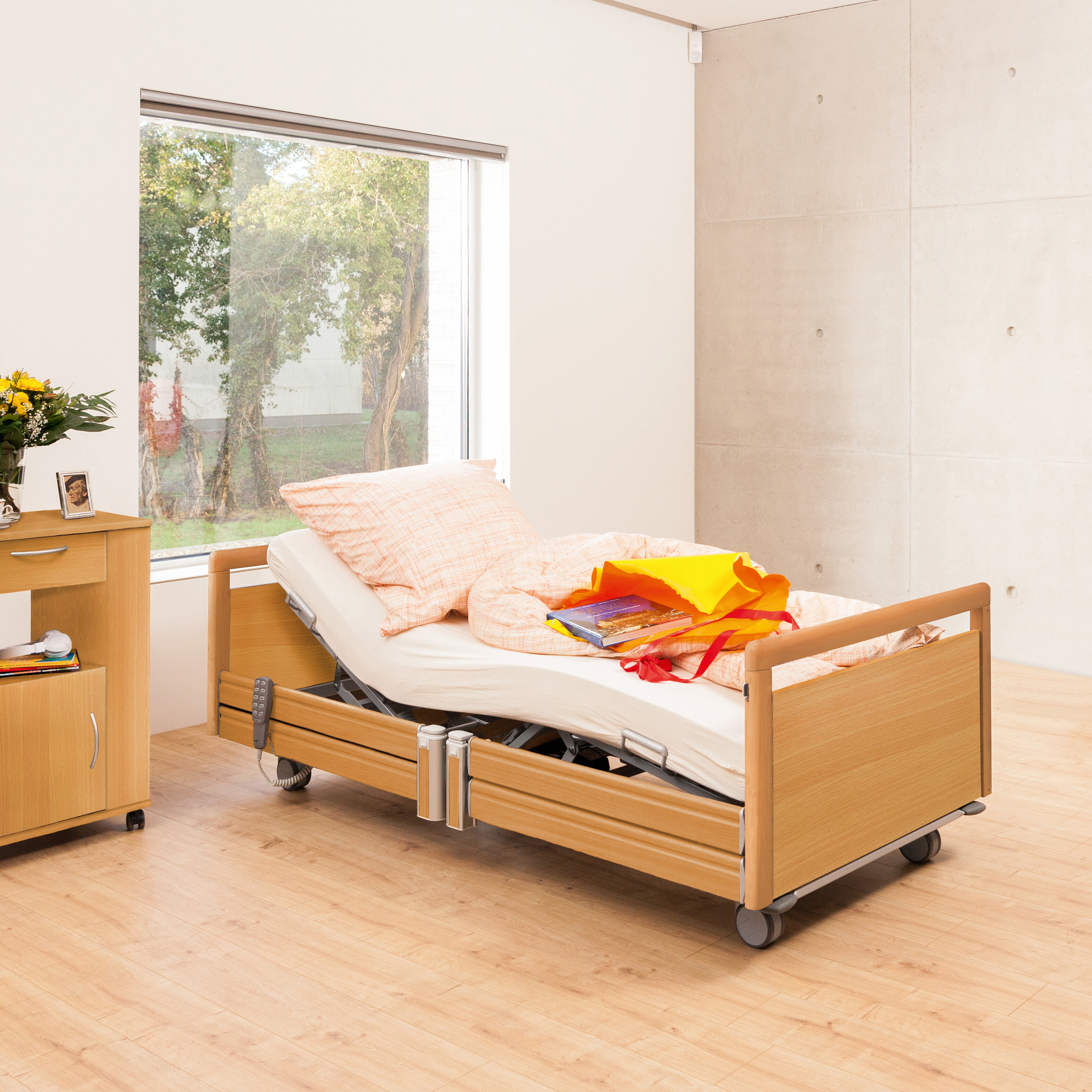 The practico® 25|80 plus combines care comfort with homely aesthetics. Available in various wood colours and with fabric upholstery on request, it blends harmoniously into any room.