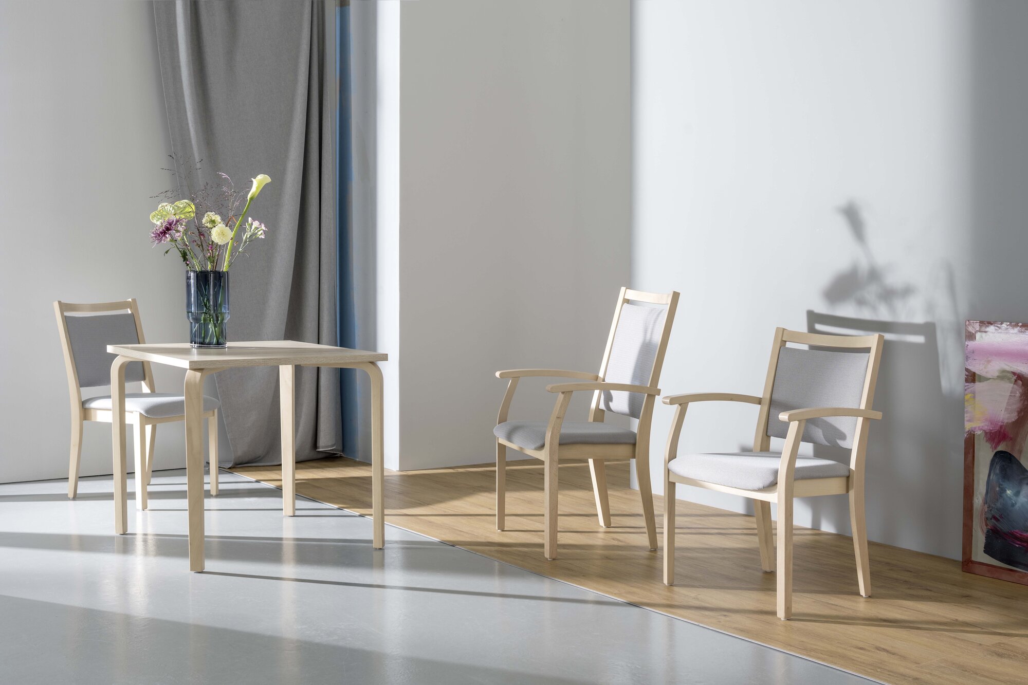 The K series models impress with their style at first glance. The backrest with all-round wooden frame is equipped with a convenient grip hole. This makes moving the chairs a breeze. Thanks to the comfortable seat height and practical stackability, the chairs from the K range are also ideal for furnishing larger meeting rooms.